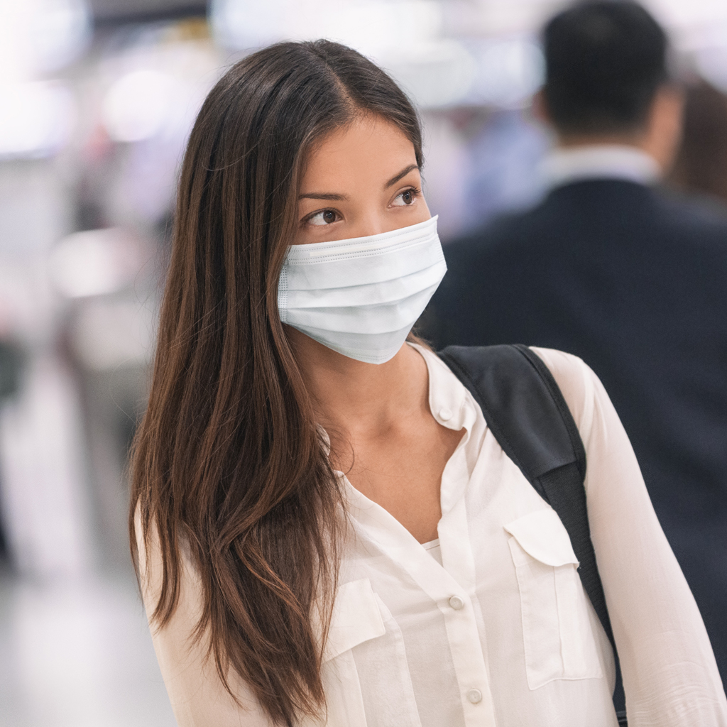 - Cover your mouth and nose with the mask and check that no space remains between your face and the mask.